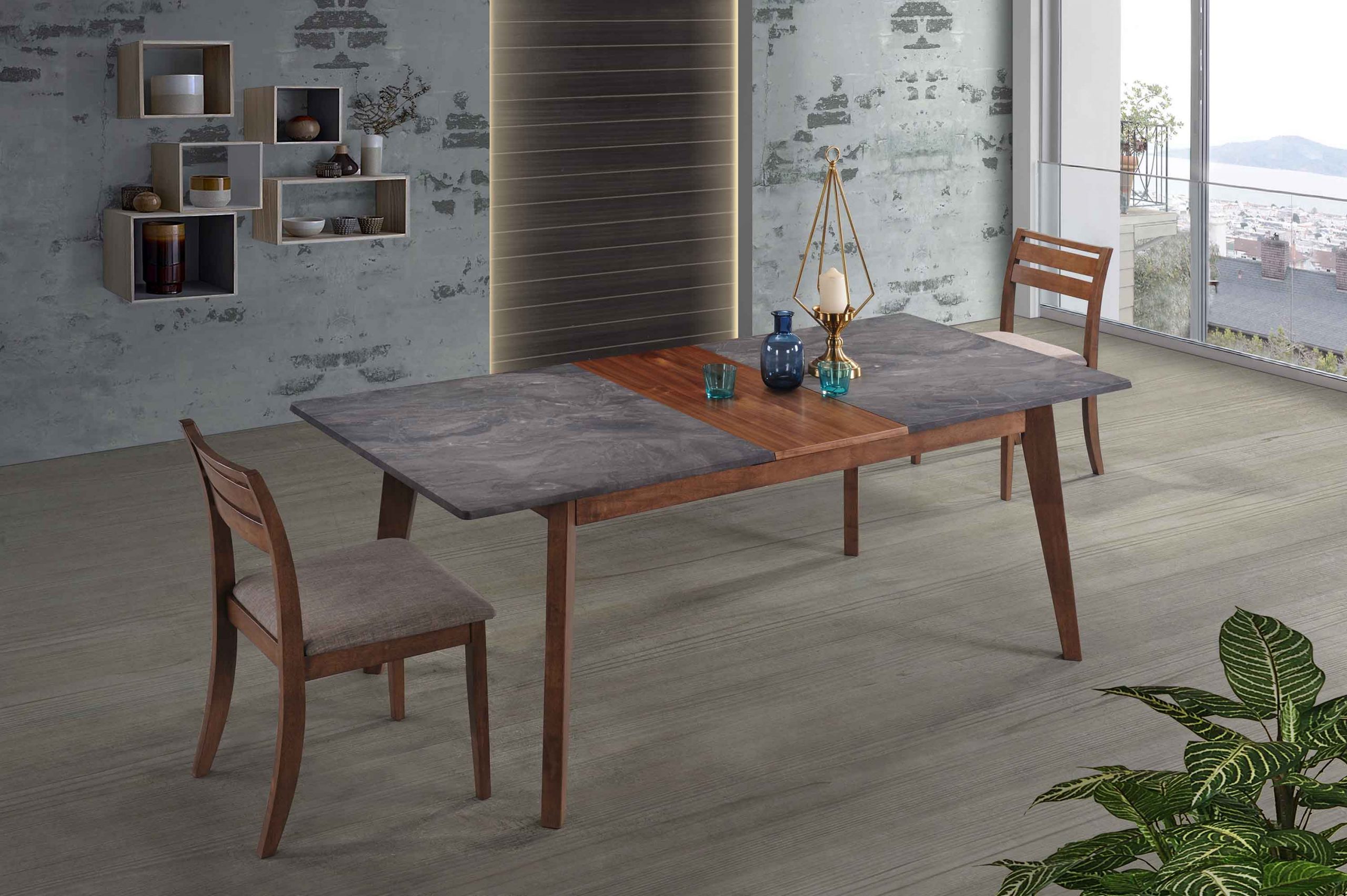 ELENA Extension Table 2m x 1m ____________________ Sandy Touch Surface 900 x 1600 (Before Extend) 2000 x 1000 x 18 mm Height: 750mm Table Top Colour: Paladina Extension Table: MDF Veneer Walnut Top